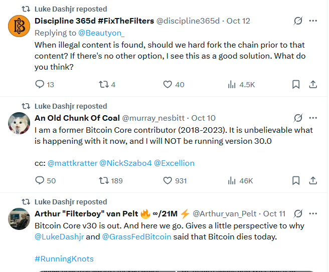 One workaround that a significant number of node operators have already been utilising is the alternative node software known as “knots,” as it enables them to enforce strict data size limits, such as 80 bytes, on transactions.
