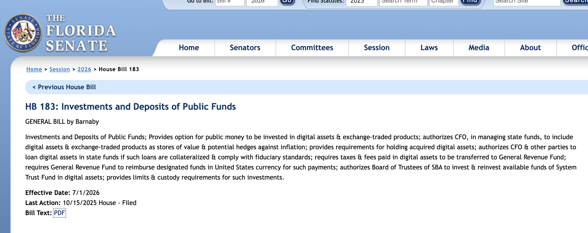 House Bill 183 will allow Florida to invest public funds into Bitcoin and other digital assets. https://t.co/tgLKnN8X5J pic.twitter.com/Usv3f0OMFf