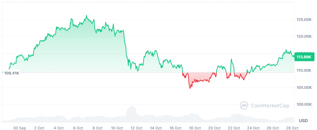 Duong pointed out that over the past two weeks, Bitcoin purchases by these companies dropped to near year-to-date lows and have yet to show meaningful signs of recovery. The pullback reflects the reduced confidence in the market after the steep selloff that saw Bitcoin fall 9% between Oct. 10 and 11, dropping from around $121,500 to lows below $110,500. Since then, BTC was able to rebound slightly to trade at $113,933 at press time.