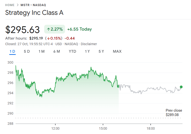 Strategy’s stock price over the past 24 hours (Source: Google Finance)