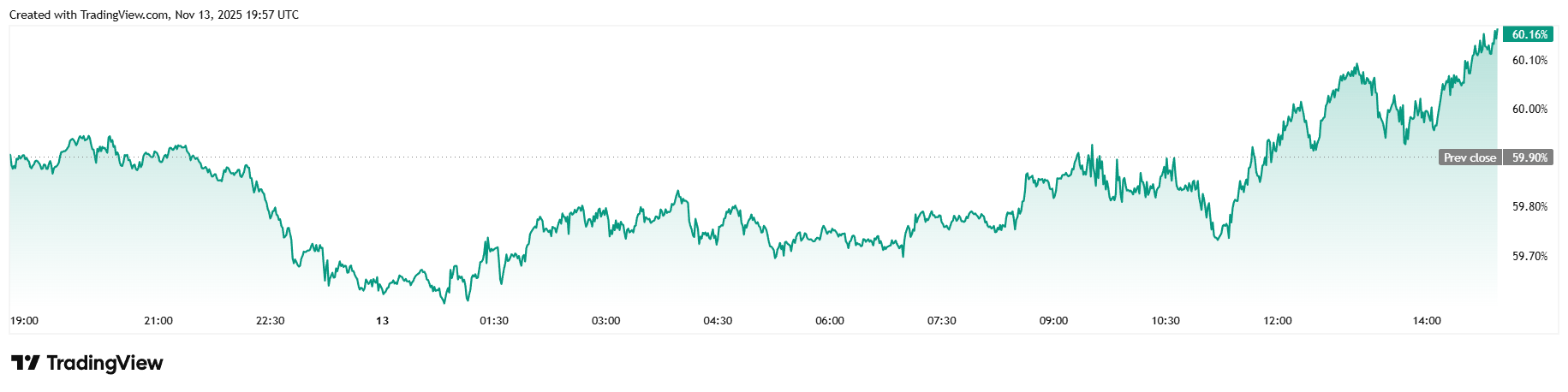 Daily trading volume jumped 45.41% to $92.65 billion as a sell-off broke out, pushing market capitalization below the $ 2 trillion threshold to $1.96 trillion. But the digital asset still outperformed lesser coins and increased its dominance by 0.39% to 60.15%.