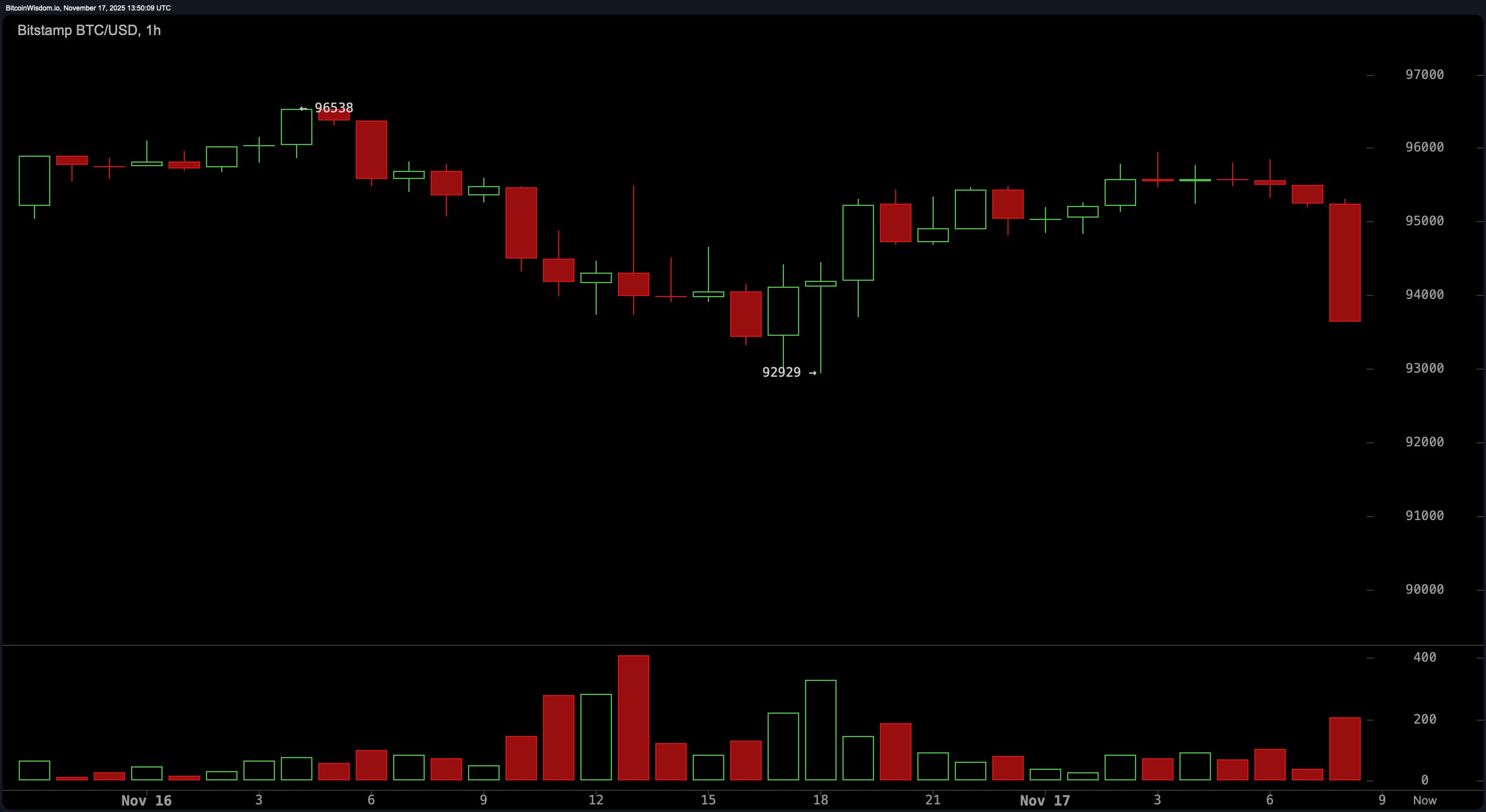Bitcoin, the world’s largest cryptocurrency, tapped an intraday low of $92,929 before clawing back to $94,625 by 8 p.m. EST, off by roughly a percentage point over 24 hours with $66.14 billion in trading volume powering the action.