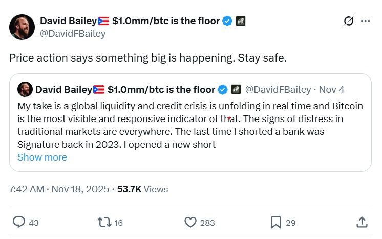 - Nakamoto CEO David Bailey warns that the price action shows “something big is happening” and warns investors to “stay safe.”