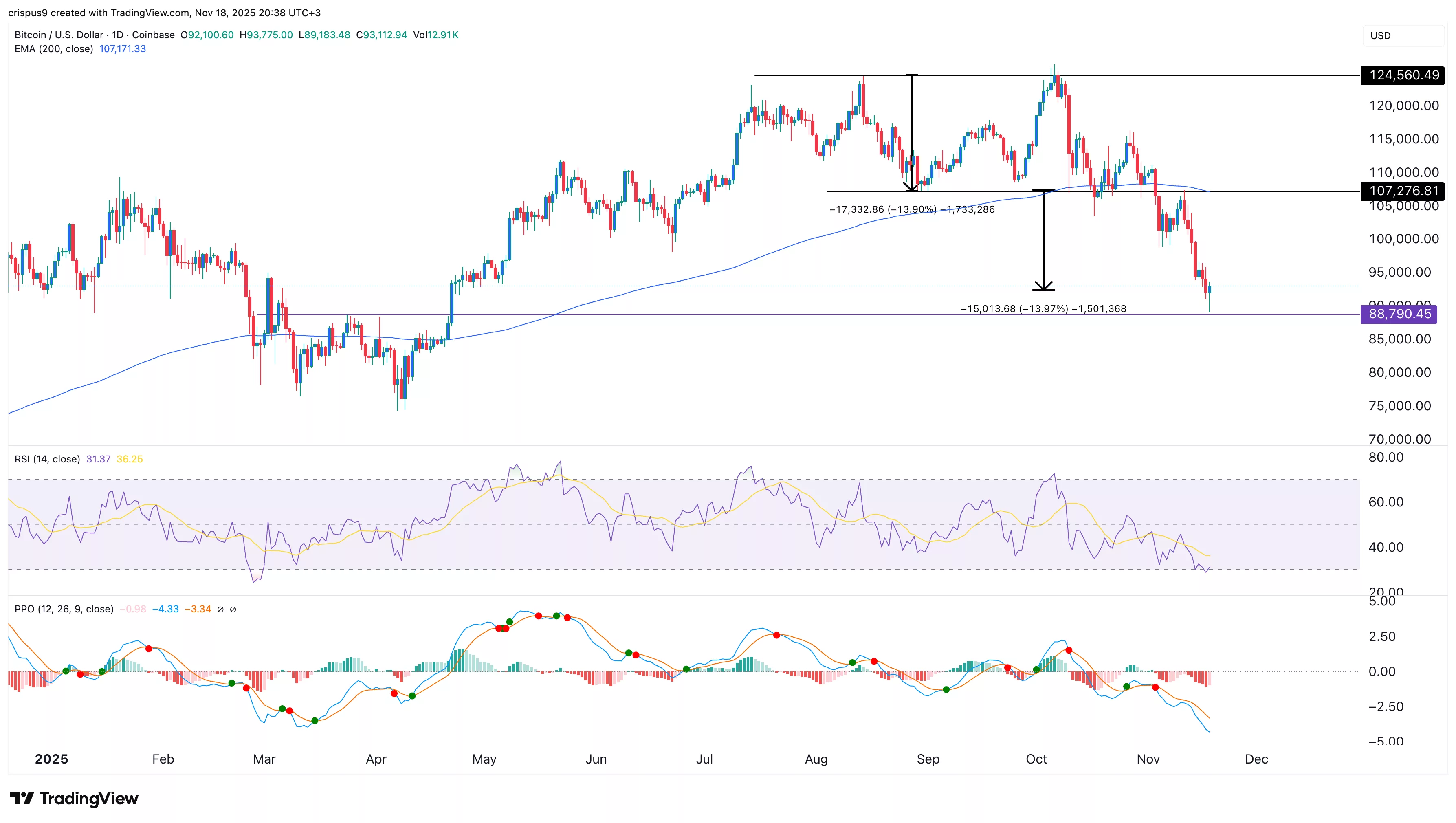 Bitcoin price stabilized today, Nov. 18, as investors bought the dip and waited for the upcoming FOMC minutes and Nvidia earnings.