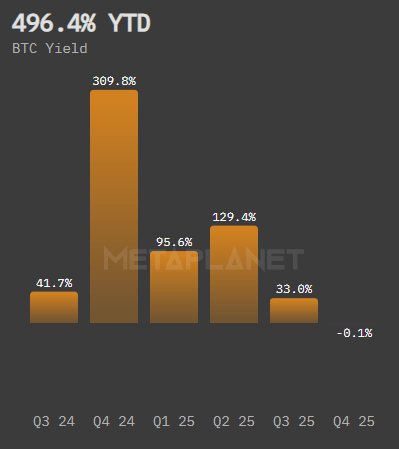 Internal financial policies limit borrowing to levels that preserve adequate collateral coverage. The company reports a year-to-date Bitcoin yield of 496.4%, reflecting both appreciation and accumulation efforts.