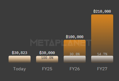 Metaplanet has set an ambitious target of reaching 210,000 BTC by the end of 2027. This goal requires sustained purchasing activity over the next three years, regardless of market conditions.