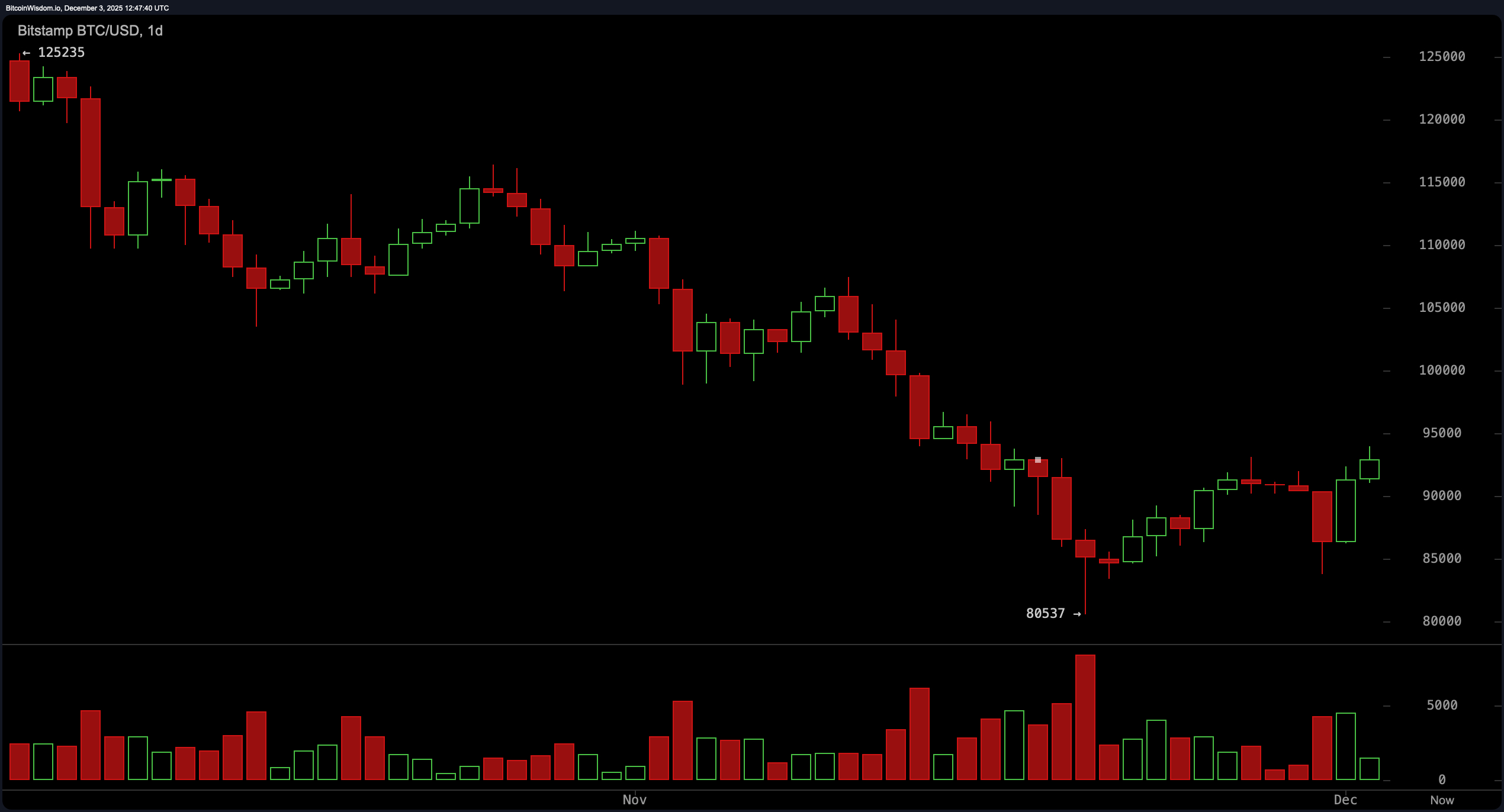 On the daily chart, bitcoin has clawed its way back from a steeper descent, reversing off a $80,537 low in a V-shaped recovery that now tests the $95,000 resistance zone. The recovery comes not just with improved structure but also accompanied by a burst in trading volume, suggesting there’s more conviction than noise behind the price action.