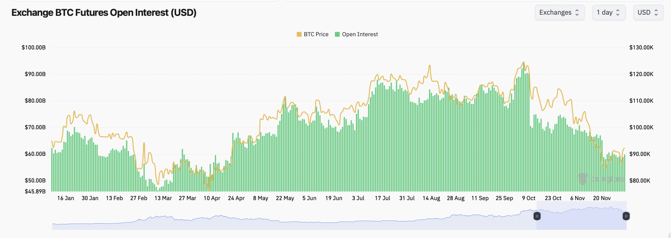- What is bitcoin’s current total futures open interest? Bitcoin futures open interest stands at 646.84K BTC, valued at $59.74 billion.