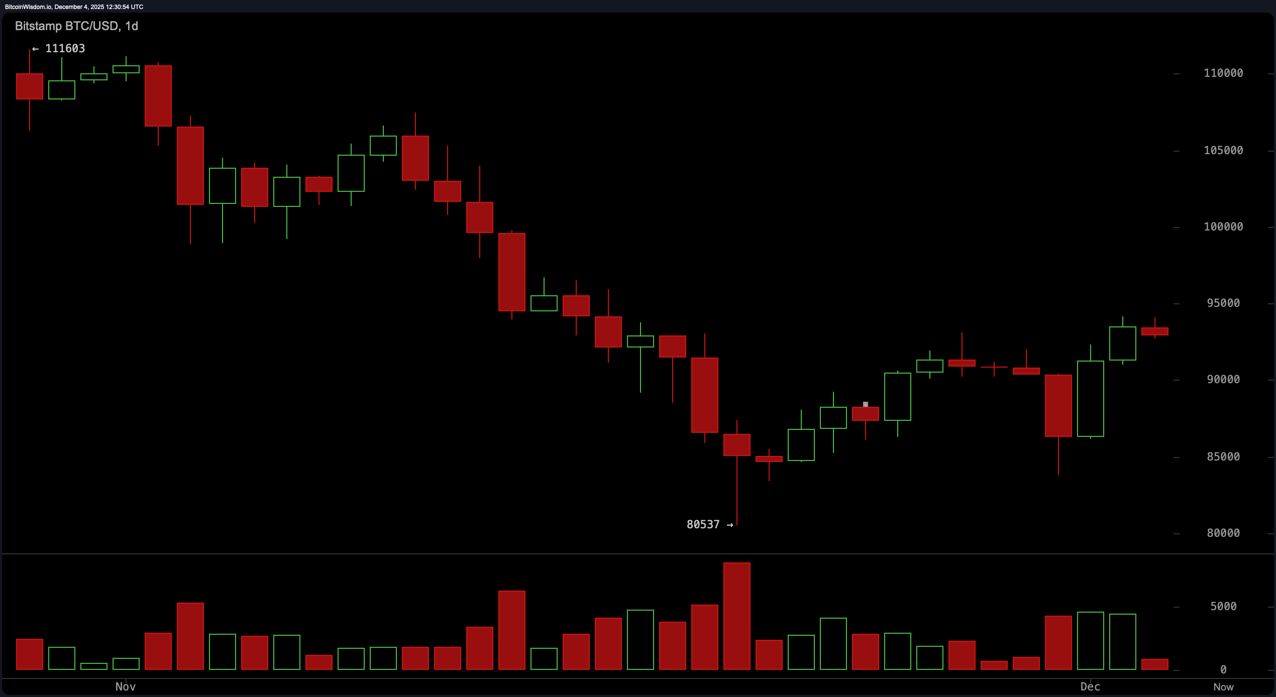 The daily chart has been on a dramatic arc, tracing a nosedive from around $111,603 to a bruising low near $80,537, only to rebound with a vengeance back toward the $94,000 mark. A string of bullish engulfing candles and a series of higher lows paint a classic accumulation pattern.