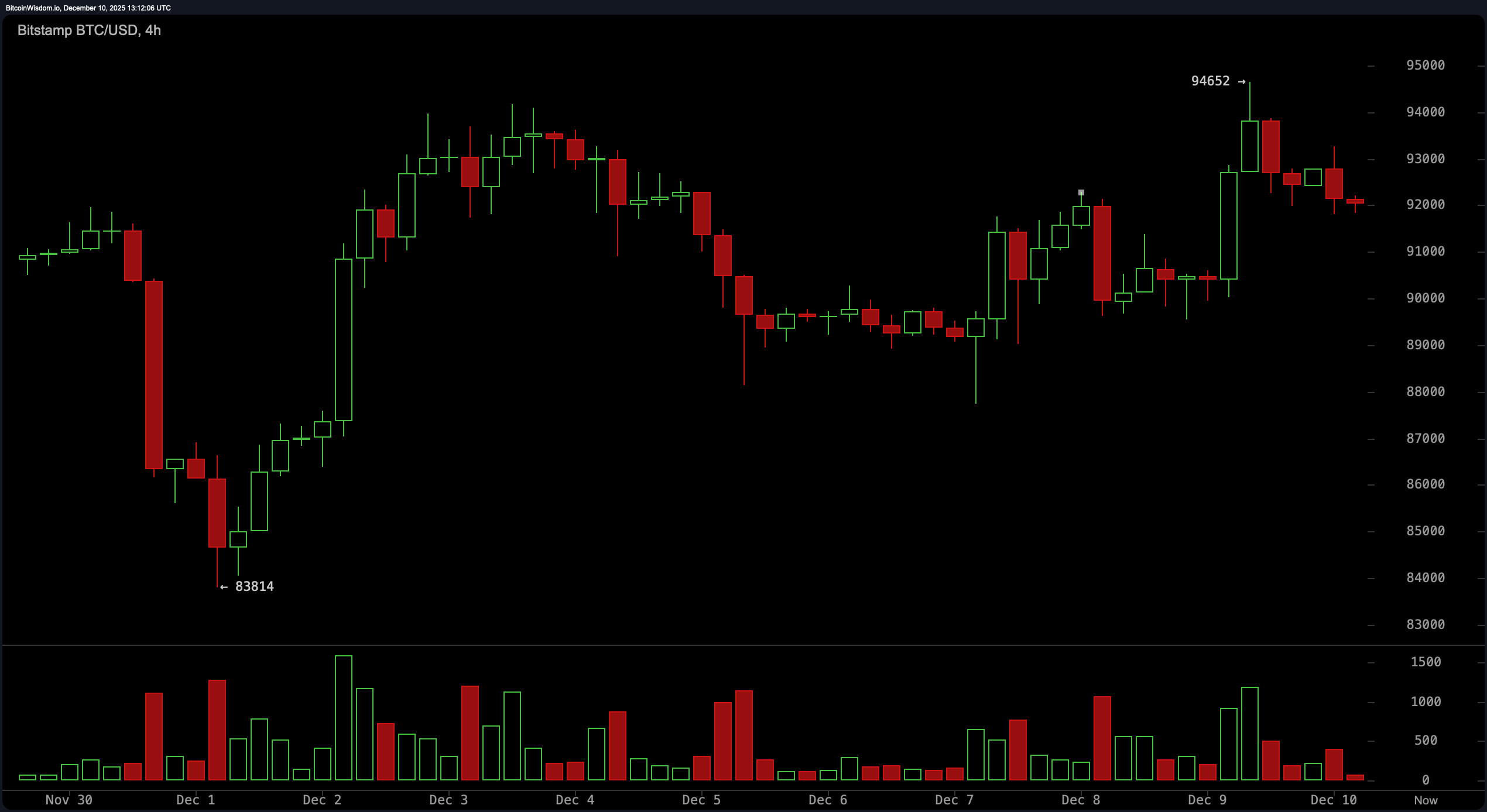 Stepping up to the 4-hour chart, bitcoin’s recent bounce from $83,814 to its local high seems to have birthed a double bottom-esque structure. Yet now it hovers in a range-bound limbo between $91,000 and $94,000, digesting gains like a marathon runner gulping electrolytes mid-race. Volume spikes during the initial surge suggest serious interest, but the declining flow since implies that momentum is cautiously being reassessed. If $94,500 is taken out convincingly, that could reaffirm bullish intentions. Below $90,500, however, it’s back to the drawing board for momentum chasers.