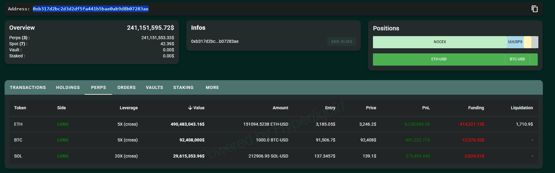 The trader, known as the 1011 whale, has opened three of the largest long positions. This time, the closely watched trader posted a reverse signal, becoming more bullish despite the fearful market sentiment. The overall position of the whale is above $500M, surpassing even the short positions before the market dropped. The current long positions on Hyperliquid is the largest for the known trading wallets of the whale.
