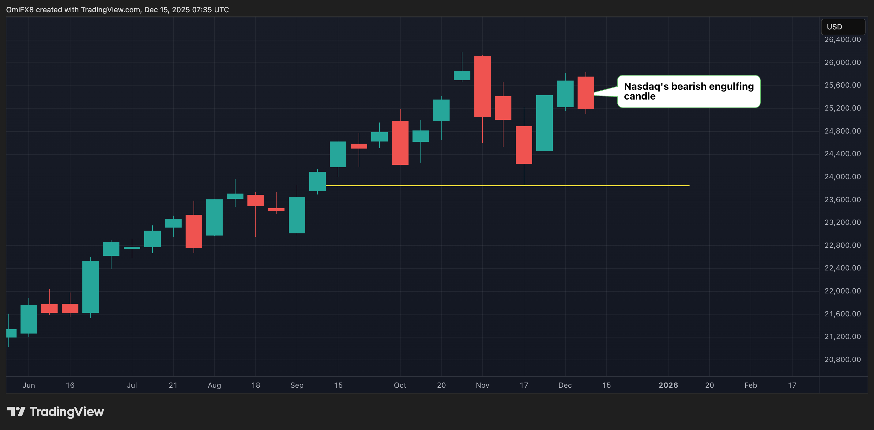 Bitcoin's BTC$89,629.86 three-week price bounce looks vulnerable to a reversal as the Nasdaq, Wall Street's tech-heavy index, hit a wall last week, hinting at potential trouble ahead.