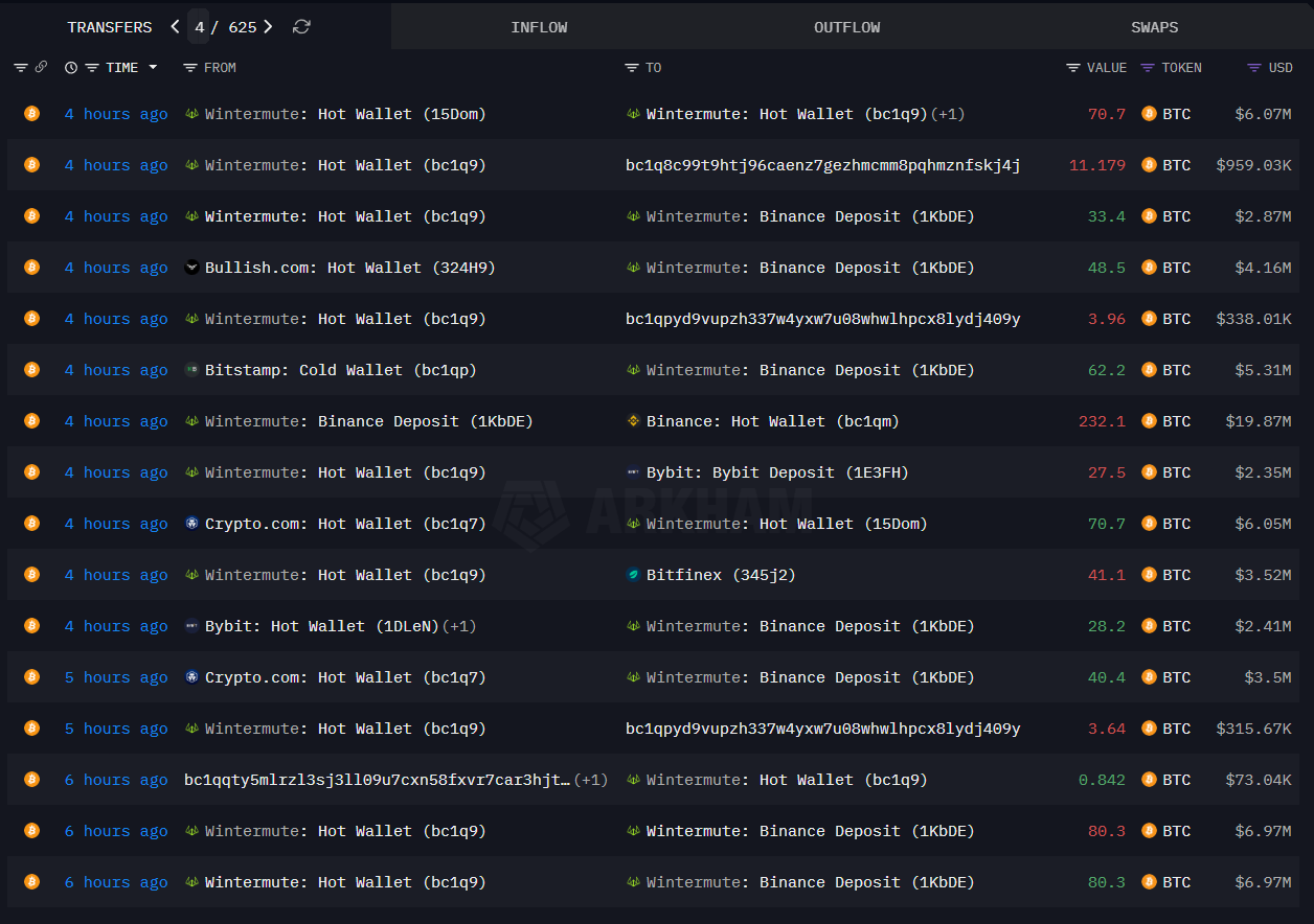 Wintermute Heavily Repositioning Bitcoin Across Centralized Exchanges. Source: Arkham