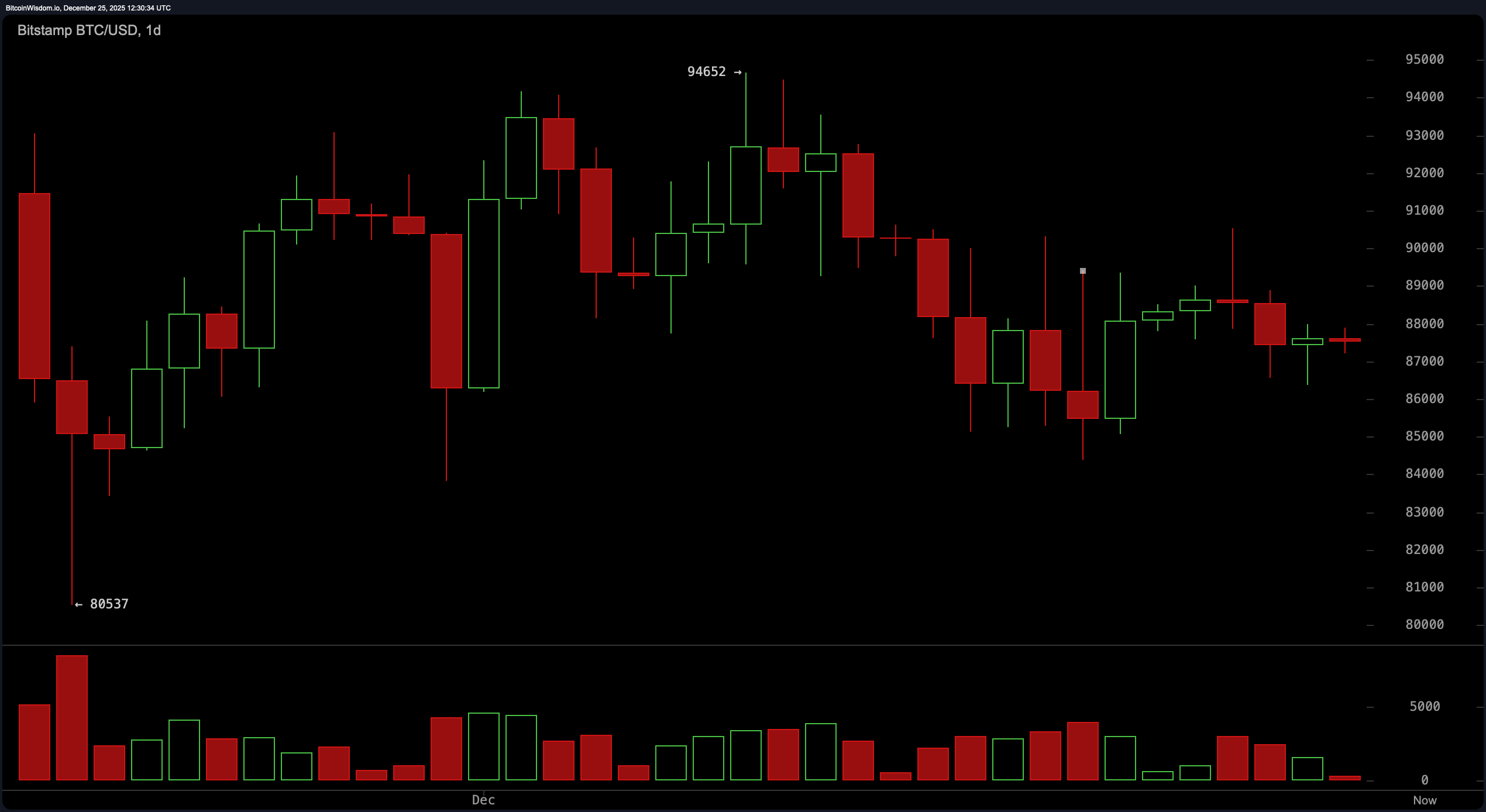 In sum, bitcoin is at a crossroads: range-bound, low- volume, and stuck beneath technical headwinds. Whether it breaks the ceiling or slides down the chimney depends less on sleigh bells and more on sustained volume and macro sentiment. For now, traders might want to keep one eye on the charts—and the other on their holiday desserts.