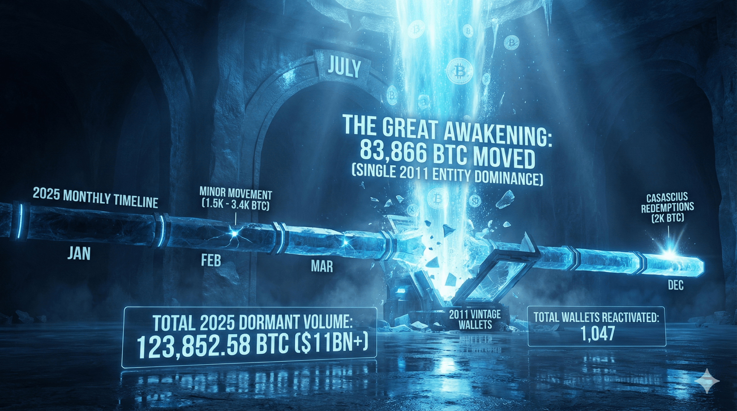 The July data illustrates this imbalance most clearly, but similar dynamics appeared throughout the year whenever wallets created between 2010 and 2012 became active. Even infrequent reactivations from these cohorts materially altered monthly totals.