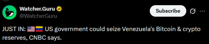 Amid the ongoing global tension, the latest report suggests that the U.S. government might seize Venezuela’s Bitcoin reserves after capturing the country’s President Nicolás Maduro.