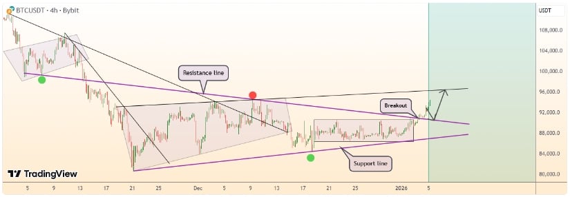 According to TradingView analyst DeGRAM, BTC/USD recently broke above a descending resistance line after a prolonged symmetrical triangle consolidation. “The breakout above the descending resistance line confirms bullish momentum, with higher lows holding along the rising support trendline,” DeGRAM noted.