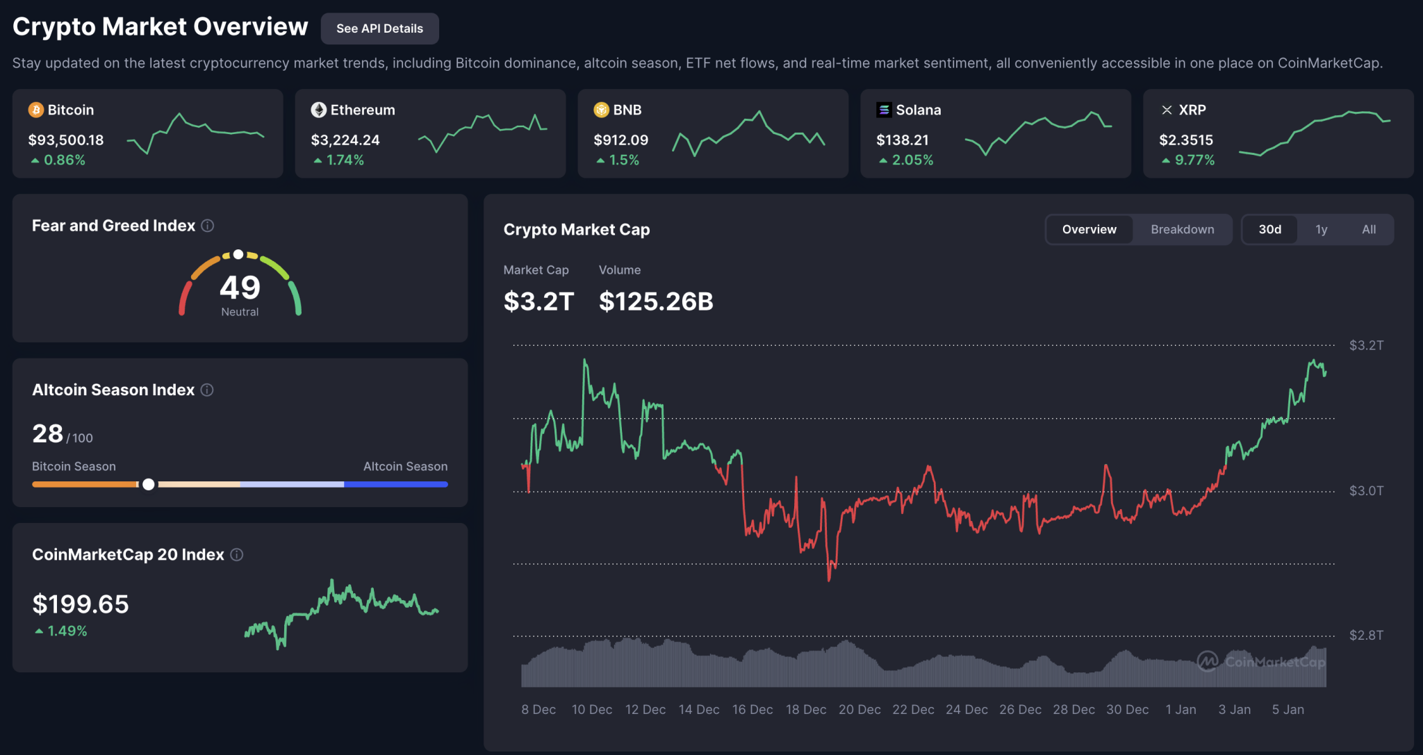 The cryptocurrency market entered 2026 with strong momentum that has lifted the total market value above $3.2 trillion.
