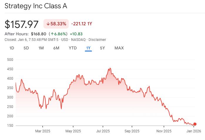 MicroStrategy, which is the biggest Bitcoin treasury firm, experienced massive losses in Q4 2025. MSTR stock ended 2025 with a staggering 60% loss.