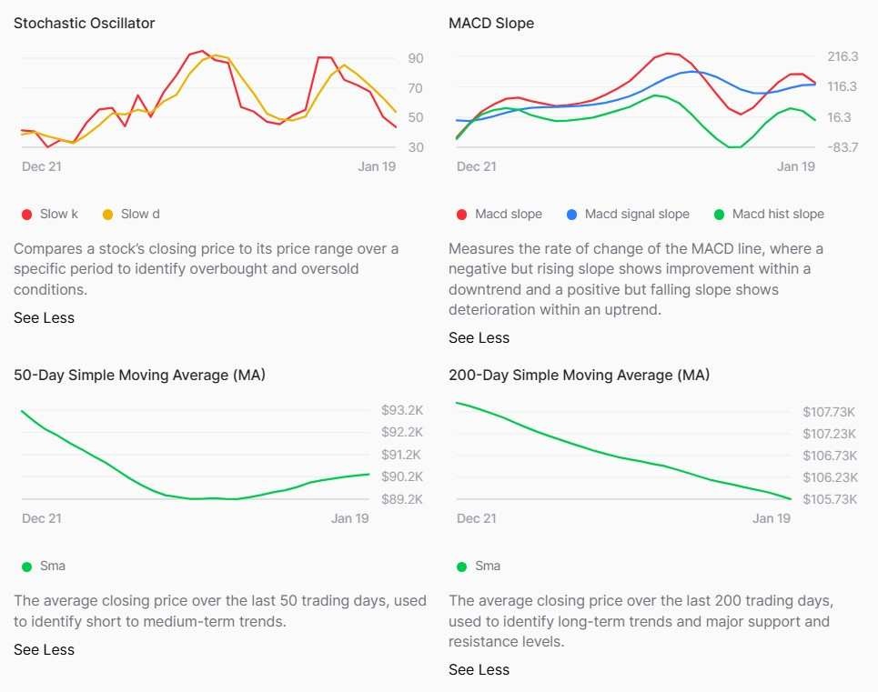 After analyzing six $BTC technical indicators, Finbold’s artificial intelligence (AI) prediction platform estimated, on average, that the world’s premier cryptocurrency will rally a mere 1.6% by January 31, and rise from its press time price of $93,013 to $94,500.