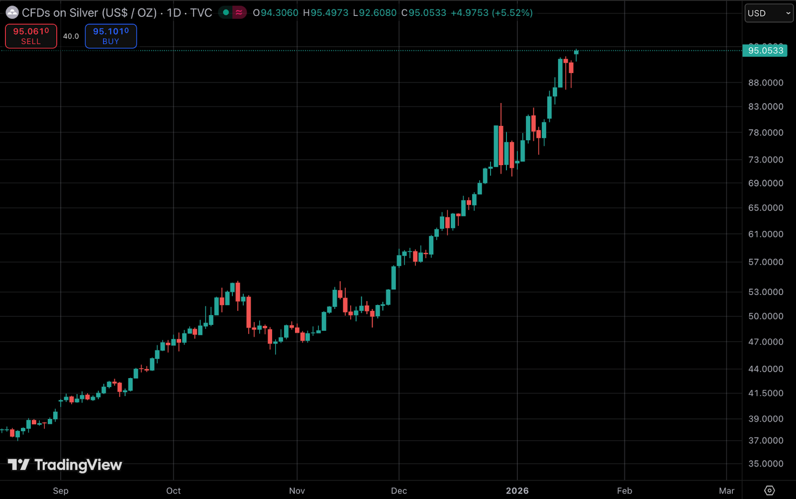 The selloff was largely triggered by macro uncertainties around Trump’s renewed push to annex the arctic island of Greenland coupled with threats of broad tariffs on eight European countries until what he described as a complete and total purchase is negotiated. While these developments remain highly speculative and politically charged, such headlines increase uncertainty around global trade tensions and diplomacy.