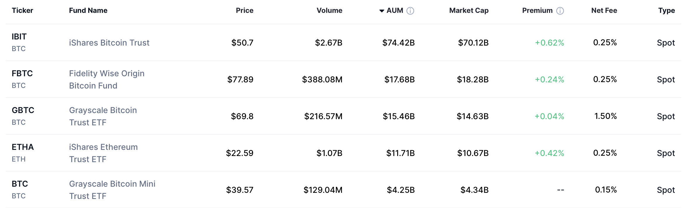 BlackRock, one of the world’s largest asset managers, launched its Bitcoin ETF in January 2024. According to CoinMarketCap data, the fund has a market capitalization of more than $70 billion, making it the largest spot Bitcoin fund.