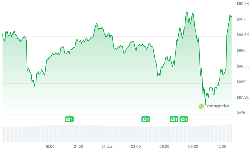 Following a volatile start, crypto markets rebounded on Wednesday after U.S. President Donald Trump reversed course on trade tariffs against Europe, which were set to take effect on Feb. 1.