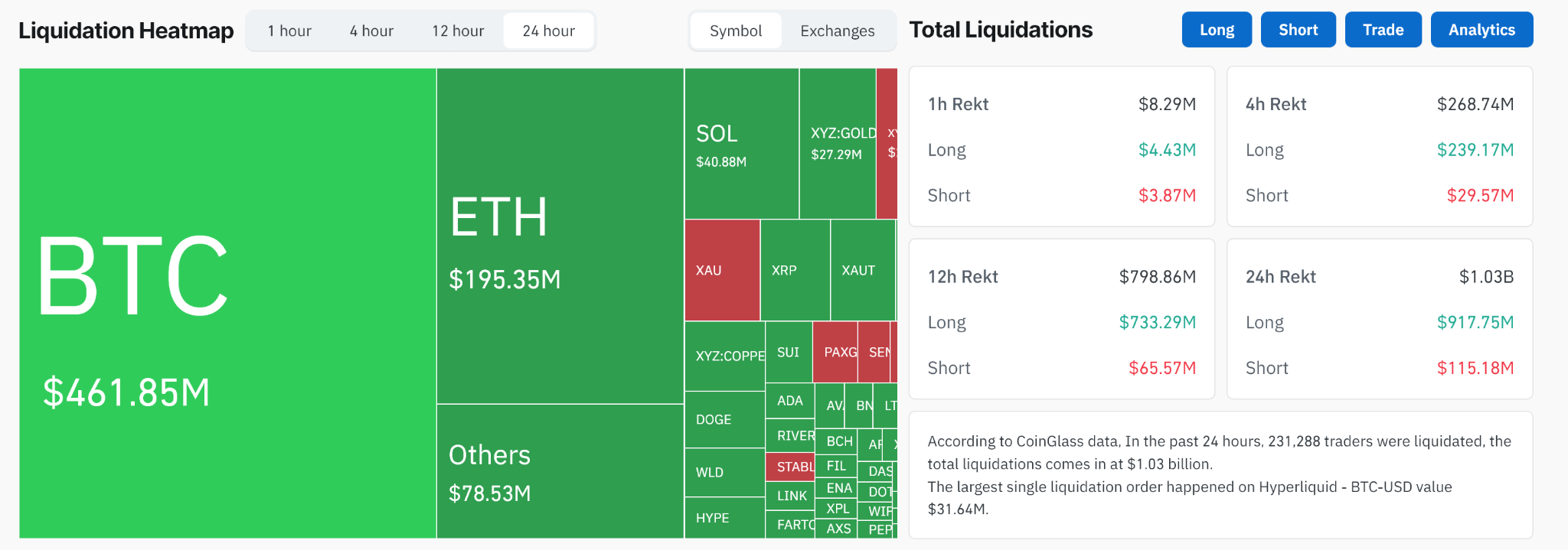 Bitcoin Saw Over $460 million in Liquidation on January 29. Source: Coinglass