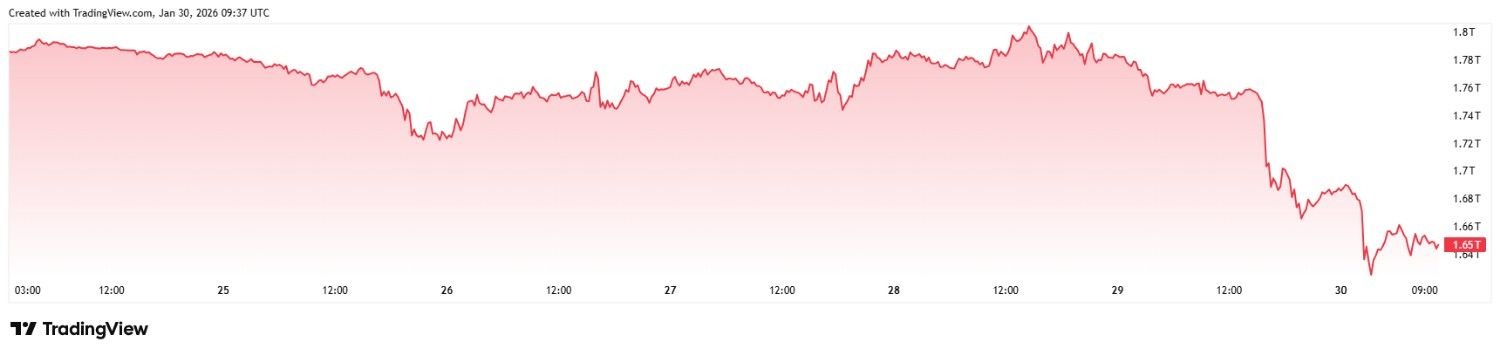 A $200 billion market capitalization plummet sent investors reeling in the 24 hours between January 29 and January 30 as the total valuation of cryptocurrencies crashed from $2.96 trillion to $2.76 trillion.