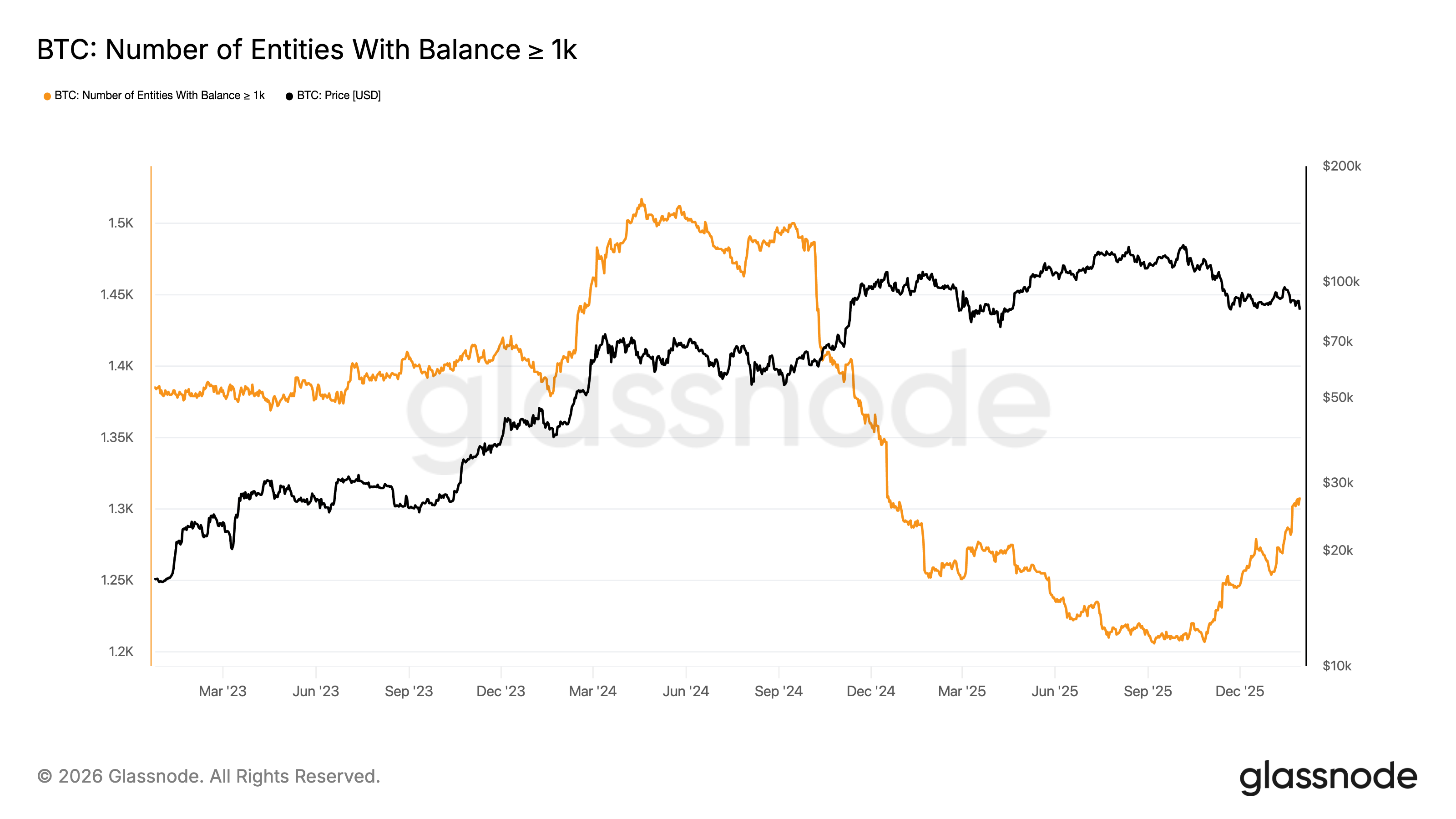 At the same time, the number of unique entities holding at least 1,000 $BTC has increased from 1,207 in October to 1,303.