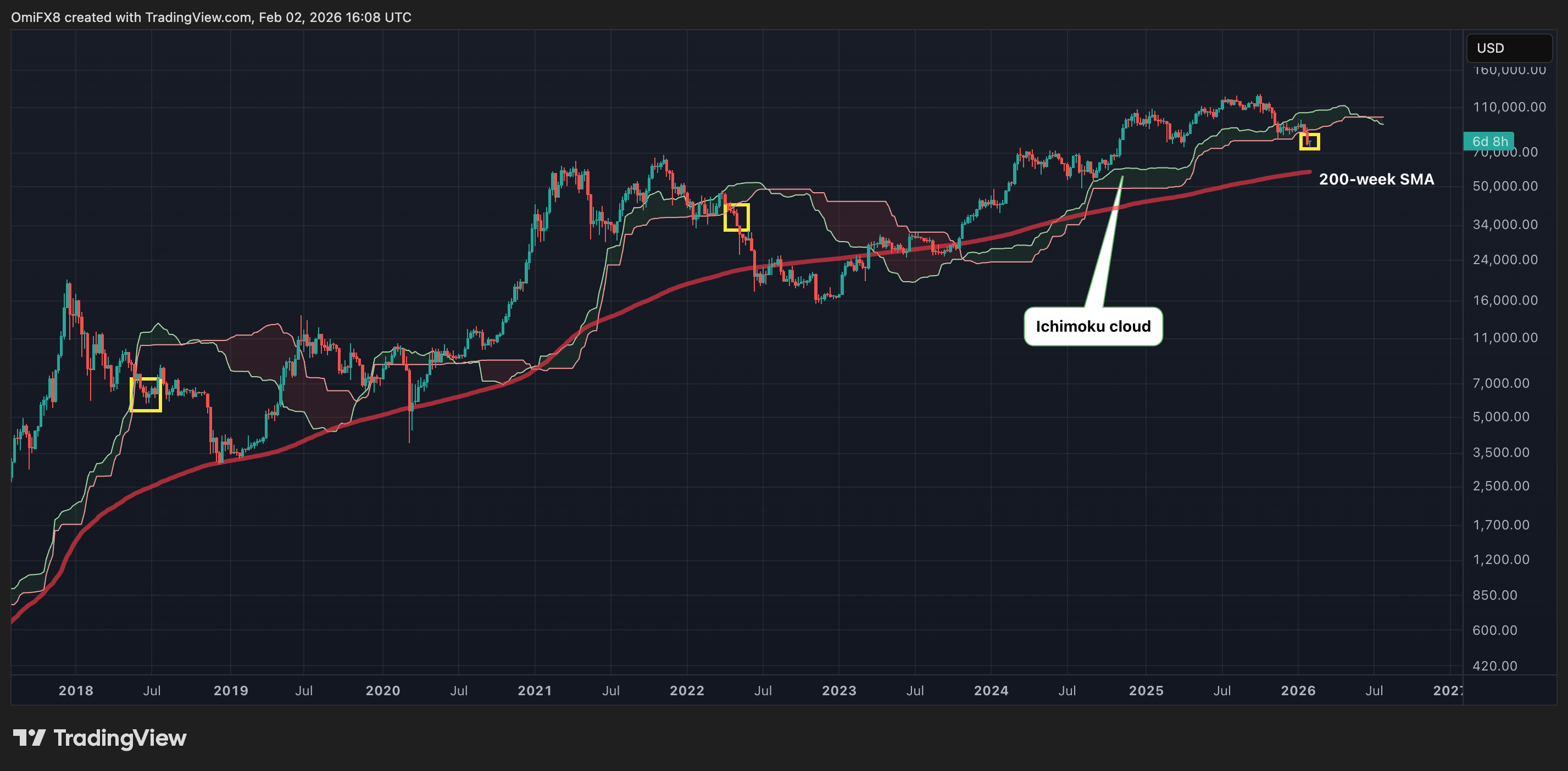 While the largest cryptocurrency's recent crash, the biggest weekly drop since March 2025, and inability to attract buyers has many holders worried about another so-called crypto winter, there's still a painful journey before it reaches the possible silver lining that is the 200-week moving average (WMA).