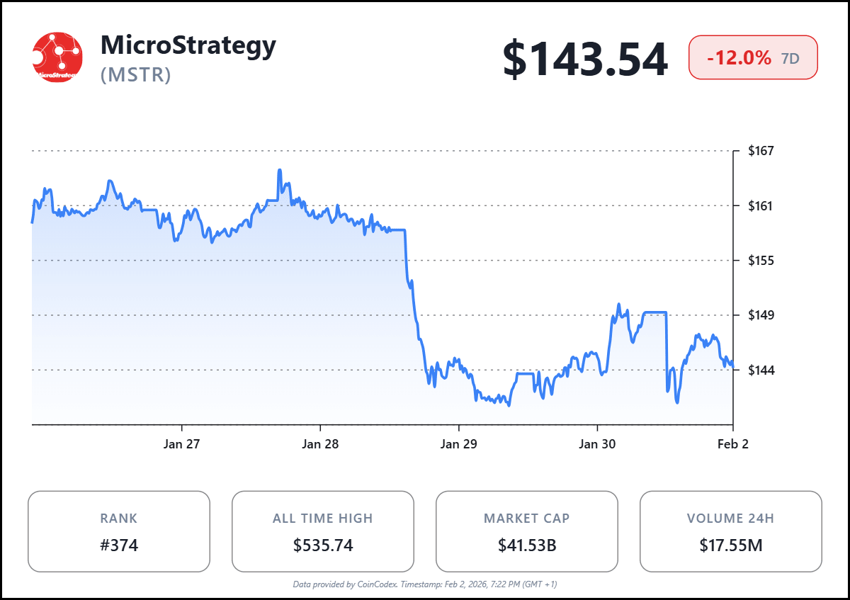 The market reaction to the latest purchase was negative. Strategy’s MSTR shares were down more than 3% in intraday trading, reflecting broader weakness in crypto-linked equities and lingering investor sensitivity to Bitcoin price movements.