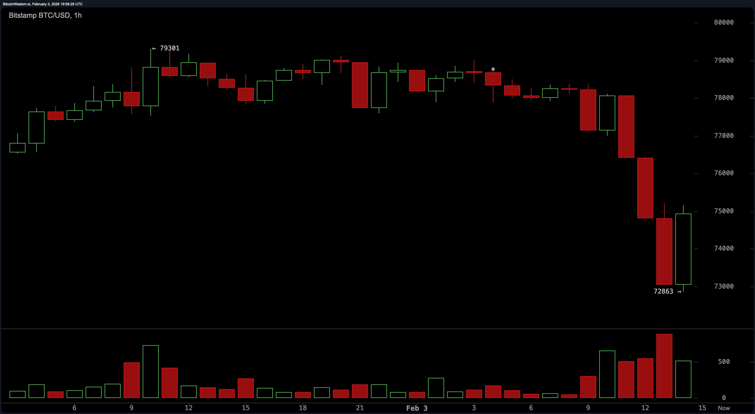 Bitcoin’s attempt at a recovery following a red weekend proved short-lived as a fresh wave of selling pushed the cryptocurrency below the $73,000 mark. According to Bitstamp data, the digital asset plummeted to an intraday low of $72,863—a nearly 7% decline from its morning opening of just under $79,000.