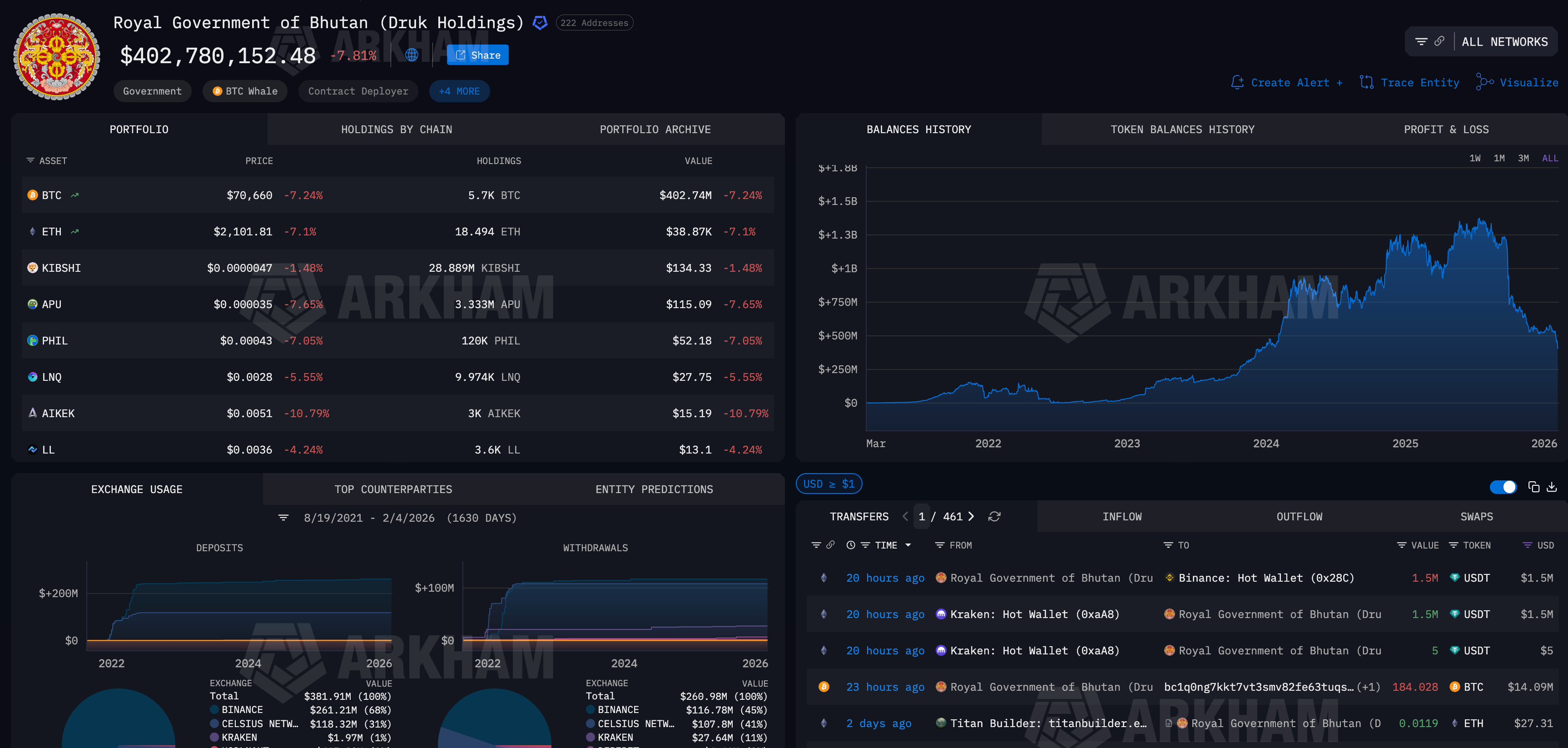 Onchain data tracked by Arkham shows Bhutan-linked wallets transferring more than 184 $BTC, worth roughly $14 million, over the past 24 hours.