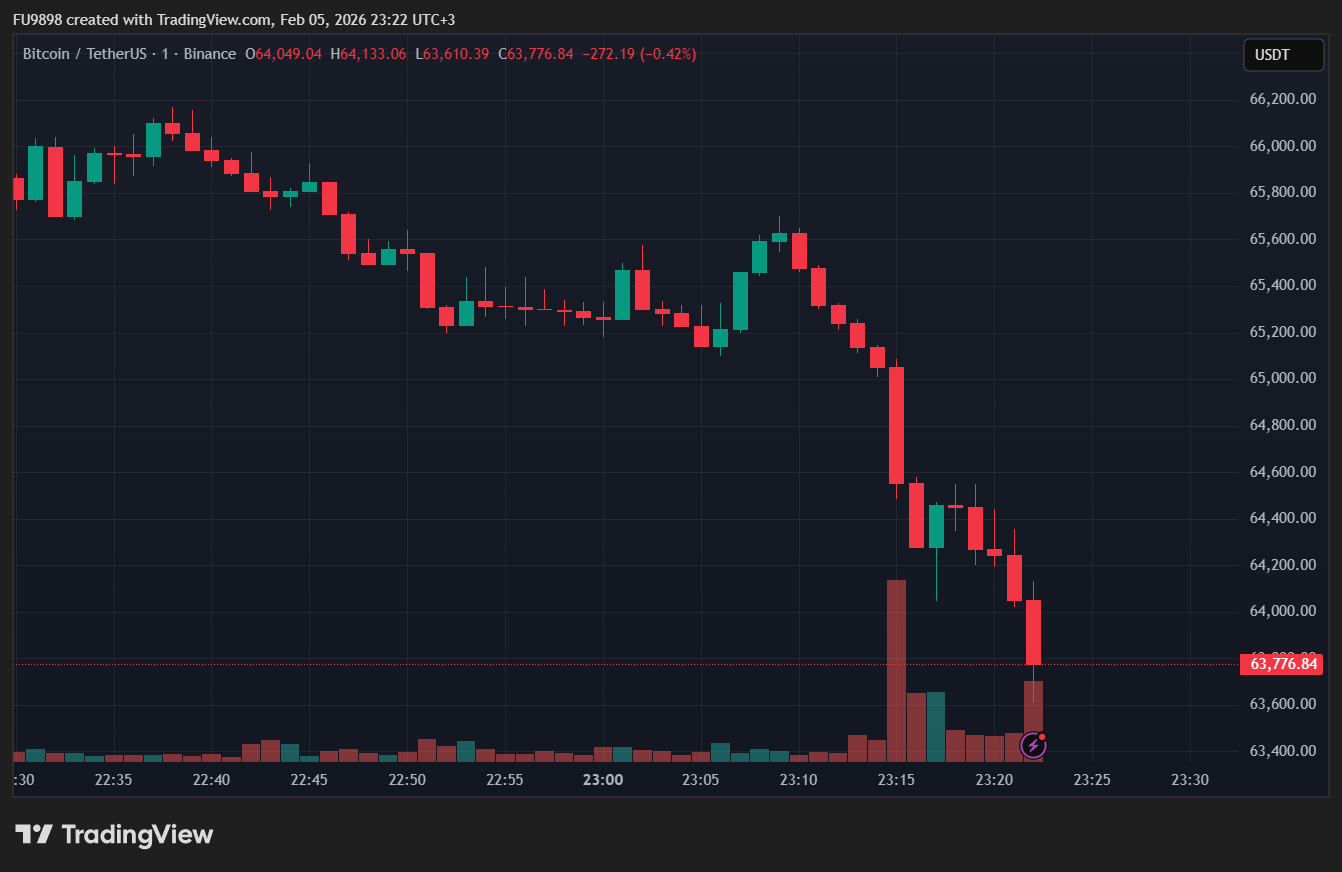 The price of $BTC fell by as much as 11% today, dropping to $63,719, its lowest level since October 2024. Bitcoin has lost almost half its value since its peak reached approximately four months ago. The sell-off was not limited to Bitcoin but also spread to altcoins, cryptocurrency ETFs, and companies like Strategy that hold large amounts of $BTC on their balance sheets.