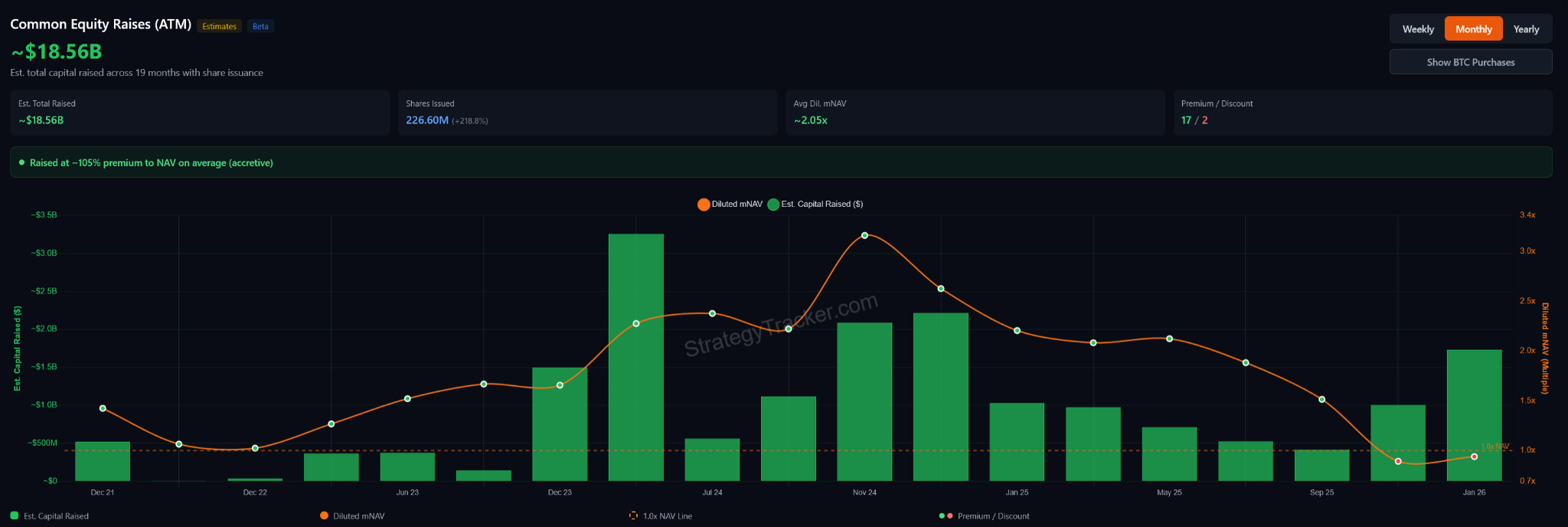 Those capital raises occurred during favorable market conditions and helped the company build its current Bitcoin position without excessive dilution.