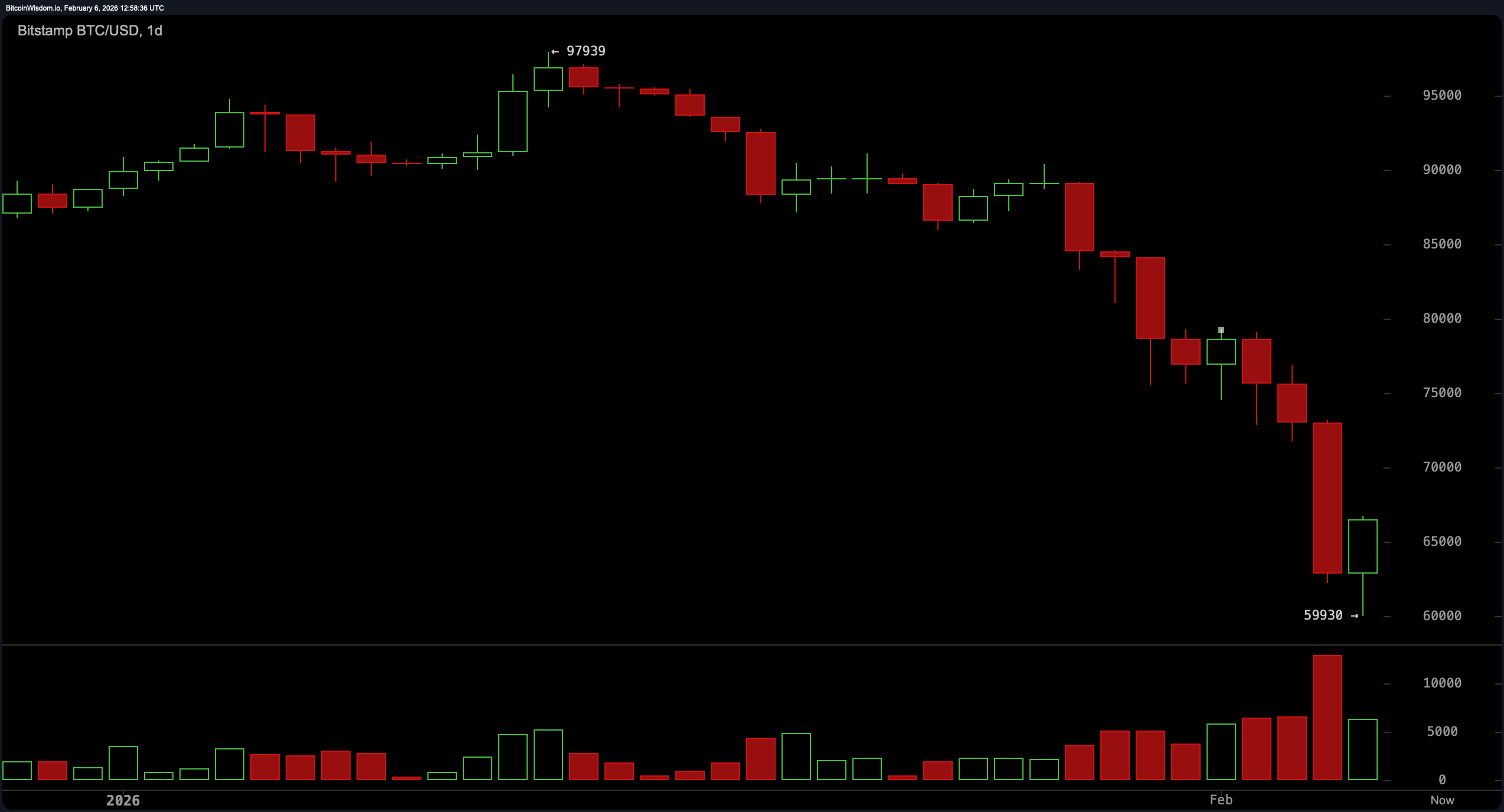 The daily chart paints an even grimmer picture. Bitcoin has slipped into a textbook lower-high, lower-low configuration after an ambitious but failed climb near $97,900. The flushing move to $59,930 was not subtle—it carried the stench of margin calls and stop-loss carnage. Support has held around $60,000–$62,000, but resistance between $66,000–$68,000 is like a grumpy doorman at the velvet rope, denying entry to any rally lacking conviction. The structure suggests that unless $68,000–$70,000 is reclaimed with high- volume swagger, any bounce should be treated with suspicion, not celebration.