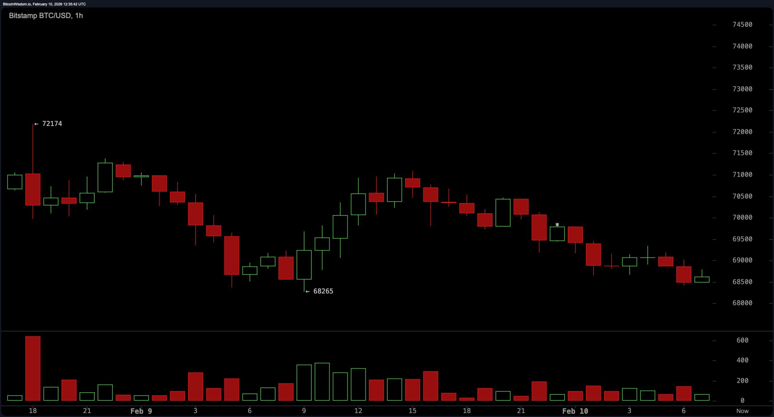 Bitcoin is holding a firm line at $68,703 on Feb. 10, 2026, around 8 a.m. Eastern time, carving out a tight intraday range between $68,427 and $71,032. With a market cap of $1.37 trillion and 24-hour trading volume hitting $49.82 billion, it looked like the asset was on a coffee break—buzzing, but not going anywhere fast.