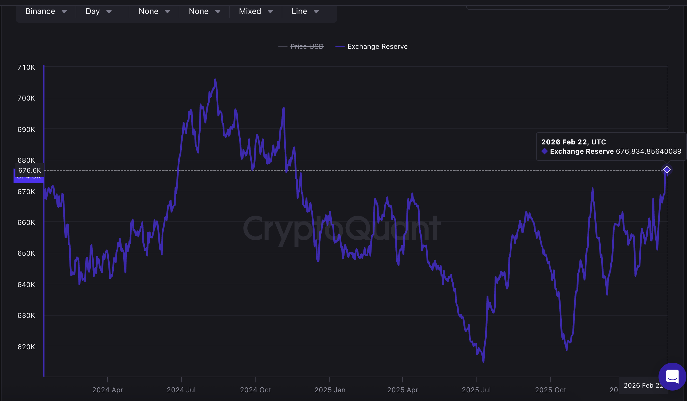 The tally rose to 676,834.84 $BTC ($44.53 billion) on Sunday, a level last seen in November 2024. That marks a 9.3% rise from the multi-month low of 618,782 in November. CoinDesk reached out to Binance for comment.