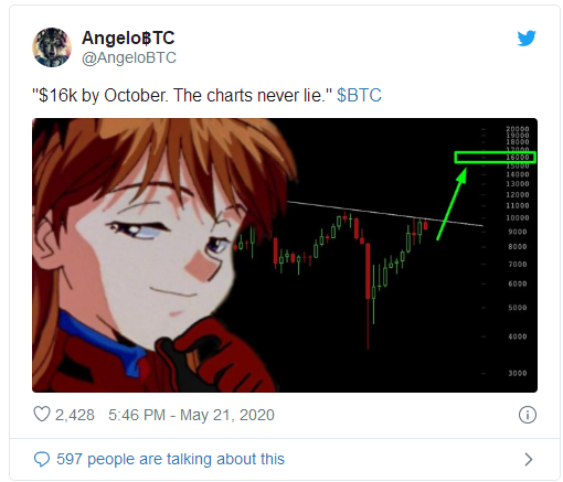 Prominent cryptocurrency trader AngeloBTC, who at one point topped BitMEX's leaderboard, predicts that the Bitcoin price is going to $16,000 by October.