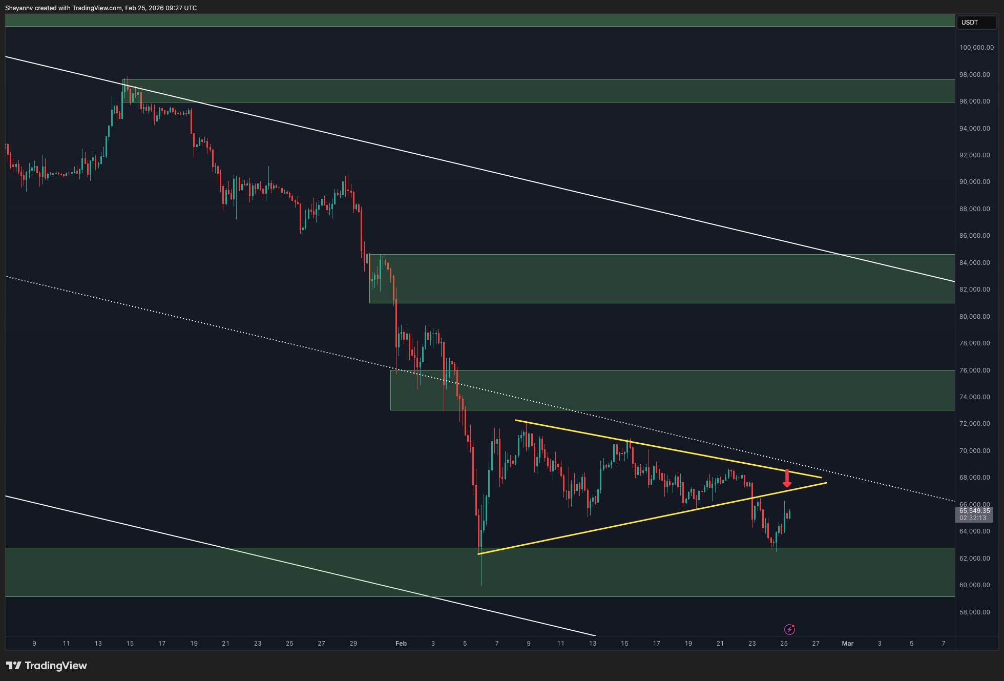 Given the current structure, short-term consolidation between the $60K demand zone and the channel’s middle boundary appears likely until a decisive breakout occurs.