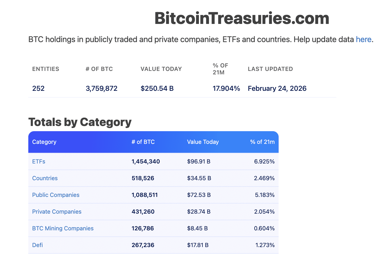 For context, ETFs hold 1.45 million $BTC worth $96 billion, public firms hold 1.088 million $BTC worth over $34.55 billion, and private firms hold $28 billion in Bitcoin.