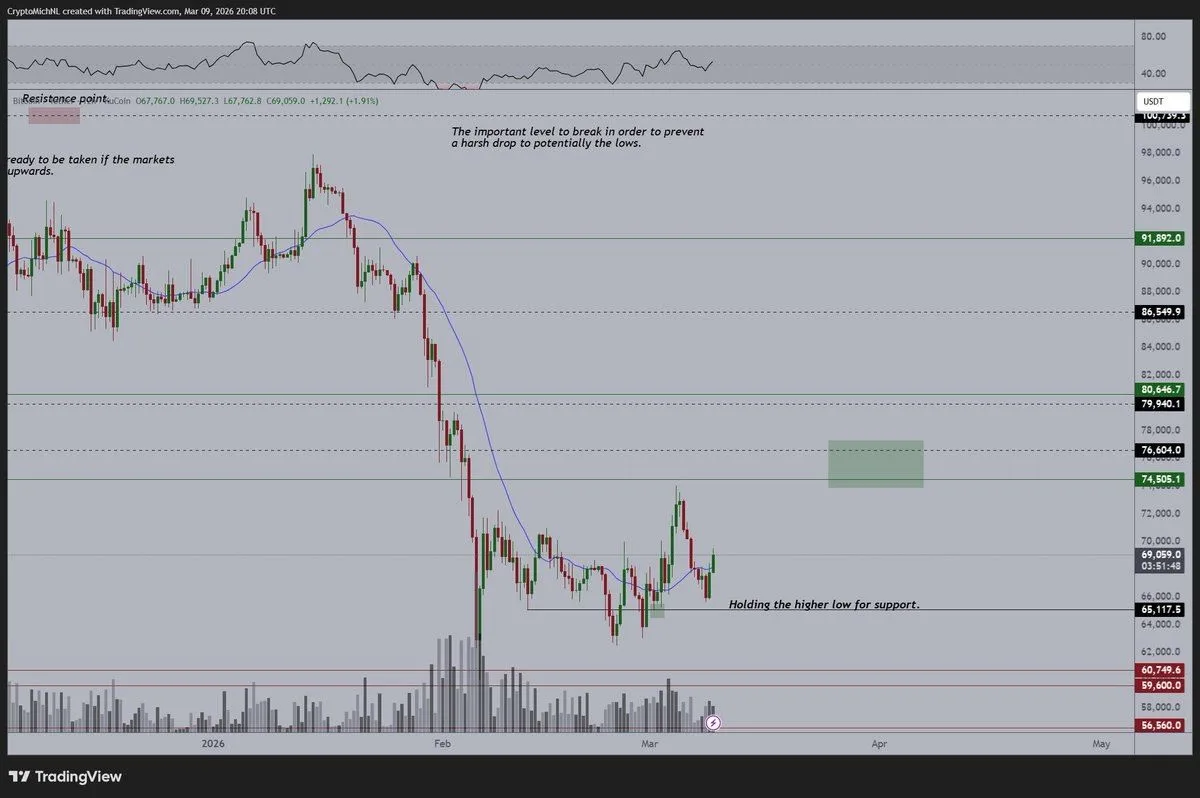 Analyst Michaël van de Poppe noted the change in market tone. He said that Bitcoin moving back above $71,000 showed early progress as higher lows continued to form.