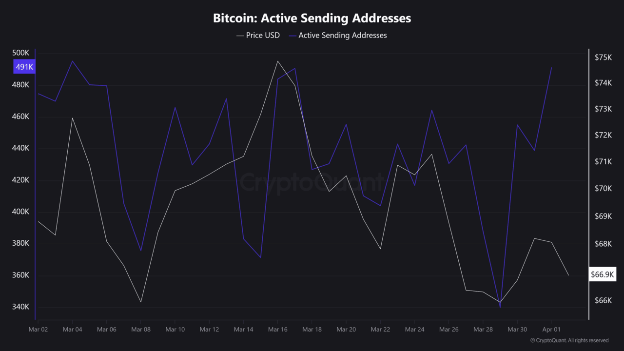 That’s not all; $BTC‘s withdrawal activity is also gaining momentum among short-term holders and traders. Based on recent data, the number of active addresses sending $BTC to exchanges has surged sharply over the past few days. The collective withdrawal activity could intensify the anticipated bearish pressure further.