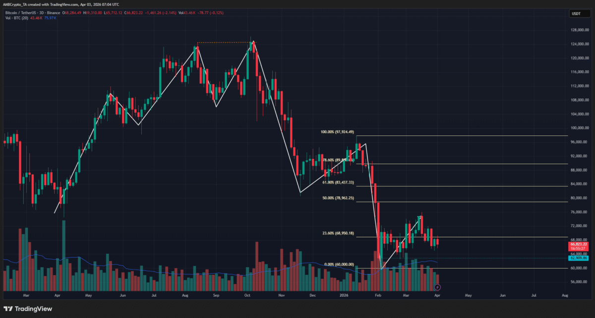 Like the double top in October 2025, Bitcoin’s inability to set new lows in recent weeks was an intriguing development. Consider the $65.9k and $62.9k levels (dotted cyan).