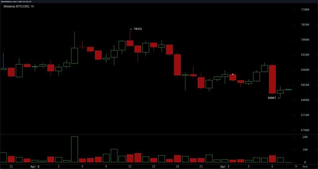 As of April 7, 2026, just after 8 a.m. Eastern time, bitcoin hovered just above the $68,000 zone with mixed signals across the 1-hour, 4-hour and daily charts.