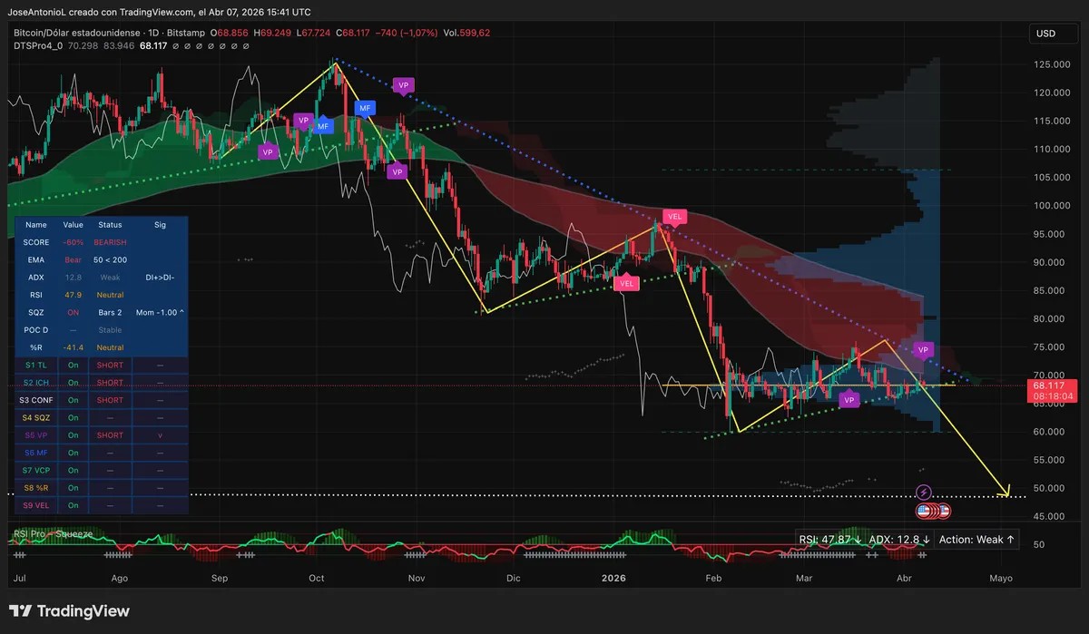 - The move has rattled markets, with Bitcoin down 2% to $68,117 and a triple-pattern breakdown playing out on the daily chart.