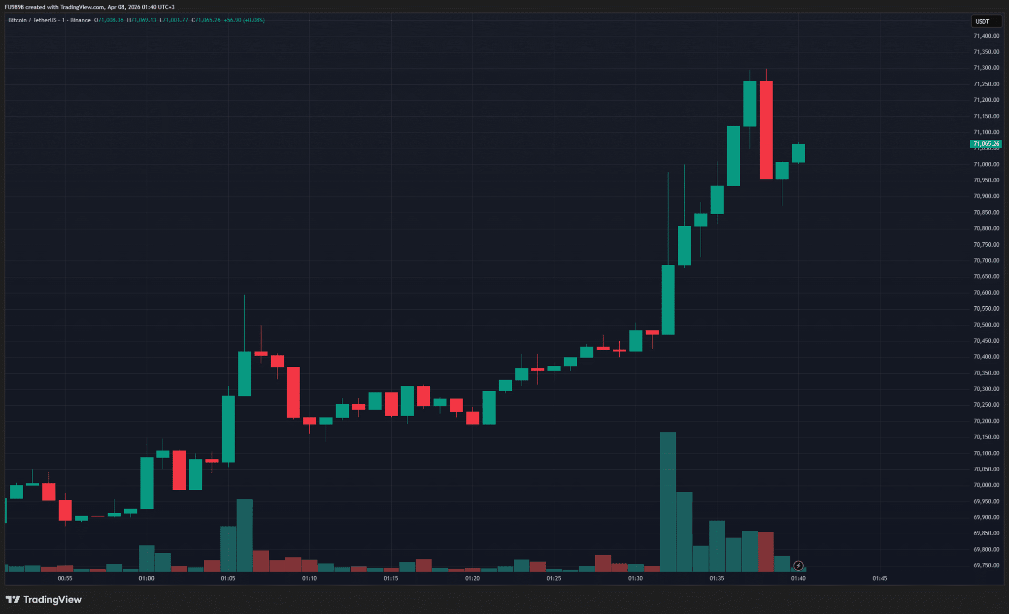 The price of Bitcoin rose by 1.5% in minutes.