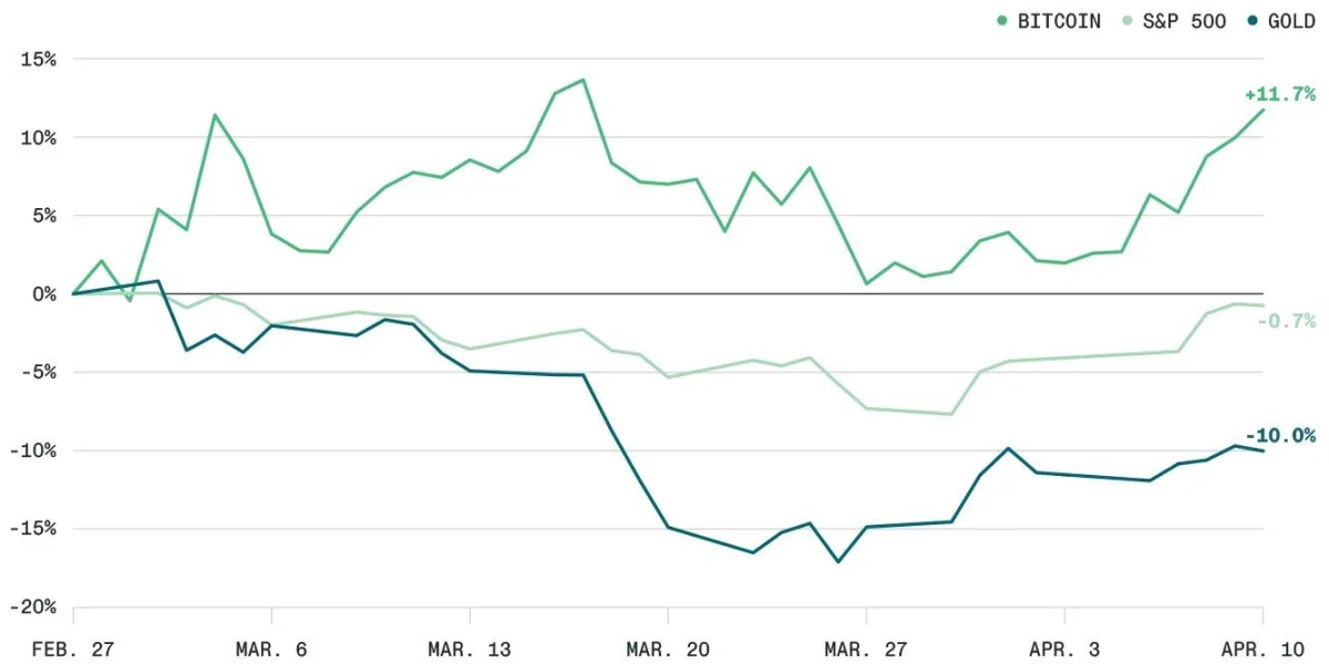 Bitwise said Bitcoin gained about 12% from late February through early April, a period marked by military tension involving the United States, Israel, and Iran. Over the same stretch, the S&P 500 fell 1% and gold dropped 10%, based on the figures cited in the firm’s note. That performance stood out because Bitcoin has often been treated as a high-risk asset that tends to weaken during periods of geopolitical stress.