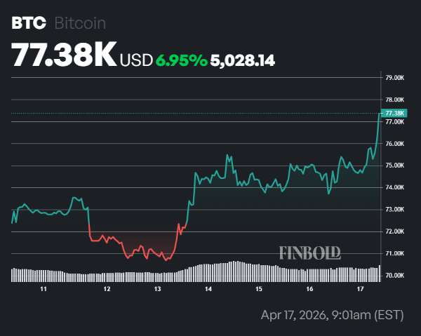 The Bitcoin price rally today, above $77,000 for the first time in more than two months, was catalyzed by the easing of tensions between the U.S. and Iran. Furthermore, investors turned to Bitcoin and the wider crypto market, which were perceived as risky assets.